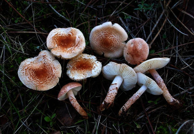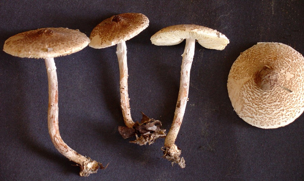 Presenta un cappello generalmente di piccole dimensioni (4-5cm di diametro), sub-globuloso-convesso nella fase giovanile, poi piano-convesso, disteso in età vetusta. La cuticola, fin dalle prime fasi, appare dissociata in piccole squamette concentriche disposte irregolarmente, abbastanza compatte al disco, più rade nella zona periferica. La colorazione delle squame è brunastra, più scura verso il centro del cappello su base di fondo rosa, con margine abbastanza regolare e leggermente debordante. Le lamelle, relativamente fitte in gioventù, tendono a distanziarsi a maturazione, sono libere al gambo e intercalate da lamellule diseguali, s di colore bianco-avorio, crema pallido. Il gambo è cilindrico, abbastanza sodo nei giovani esemplari, fibrosetto e presto cavo a maturazione, di colore bianco sporco con toni rosa, decorato da squamule brunastre disposte a spirale, che lo avvolgono fin quasi alla base. L’anello è poco distinto, riscontrabile nella parte alta del gambo sotto forma di residui o frammenti ocra-brunastri che formano una fascetta circolare.
